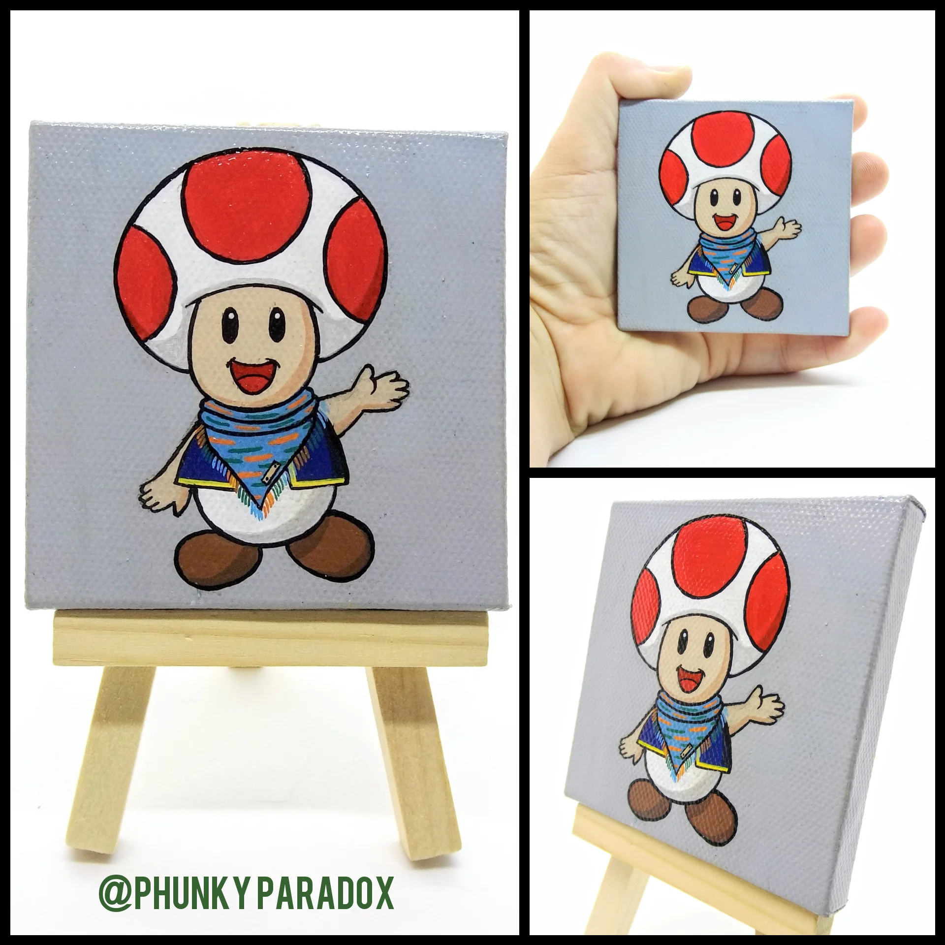 All pieces are on square 2.5X2.5 inch canvasses, or rectangular 2X3 inch canvasses.